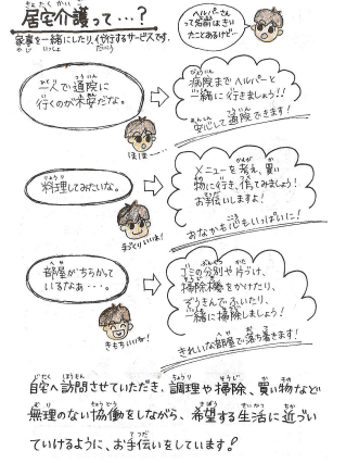| 利用するにはどうすれば? | ①市役所で利用申請をして、受給者証の発行は お済みですか。 ②まずは相談支援センター陽だまりに相談して下さい。 電話:072-809-0015 ③利用内容の確認、ヘルパーの調整を行います。 ④重要事項の説明、利用契約を行います。 ⑤ヘルパーさんを派遣します。 |