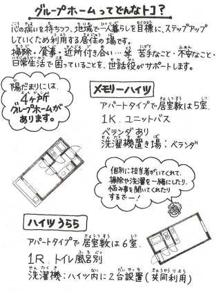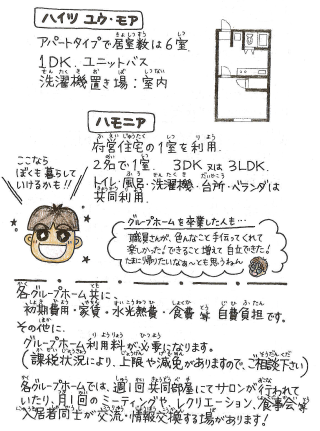 | 一人暮らしの練習って? | 枚方市精神障害者地域移行支援事業(体験居室) を利用して一人暮らしの練習ができます。 |